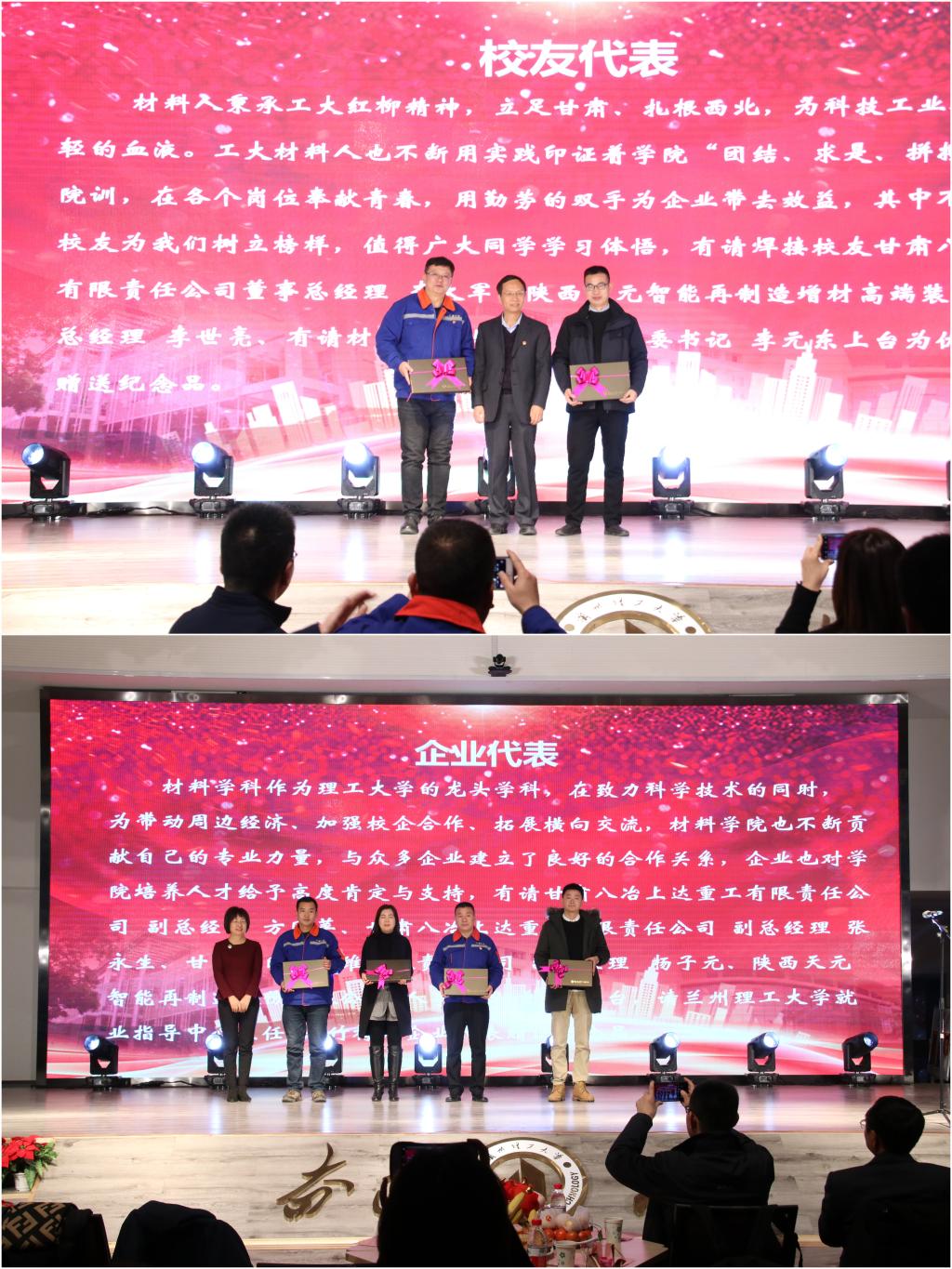 为树正气、育浩气,持续优化学风、院风,表彰在学风建设中涌现出的先进典型,m88help center于12月21日晚7点在兰工坪校区大学生活动中心四楼举办2019-2020学年学风建设表彰大会暨“筑梦材料,聚梦同行”迎新晚会。m88help center就业指导中心主任李竹梅,优秀校友代表甘肃八冶上达重工有限责任公司董事总经理李大军、陕西天元智能再制造增材高端装备有限公司总经理李世亮,企业代表甘肃八冶上达重工有限责任公司副总经理方国苹、张永生、甘肃郝氏炭纤维有限责任公司副总经理杨子元、陕西天元智能再制造股份有限公司人事部经理刘娟等出席大会。m88help center领导班子、系主任、班主任、辅导员及20级本硕新生参与大会。