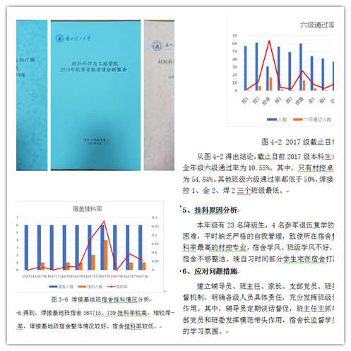 辅导员与班主任协同,以学生为中心的教育管理趋向精细。为充分发挥辅导员和班主任在育人中的不同作用,通过优化班主任队伍结构、细化辅导员和班主任的分工,使的二者的职能发挥更趋合理、更具专业性。明确规定新生班主任统一由辅导员担任,重在帮助新生在各方面养成良好习惯,“扣好大学的第一粒扣子”。自大二年级开始,班主任全部由专任教师担任,重在使学生强化专业认知,不断提升专业素养。同时辅导员兼任支部书记,实现对学生入校至毕业的全程陪伴式教育,与并其他班主任定期沟通纵向四个班级的学生思想状况、学业情况,做到因材施教,差异化引导,促进每一位学生的良性、全面发展。经过精细化管理实践,全院近30名问题学生转变效果明显。