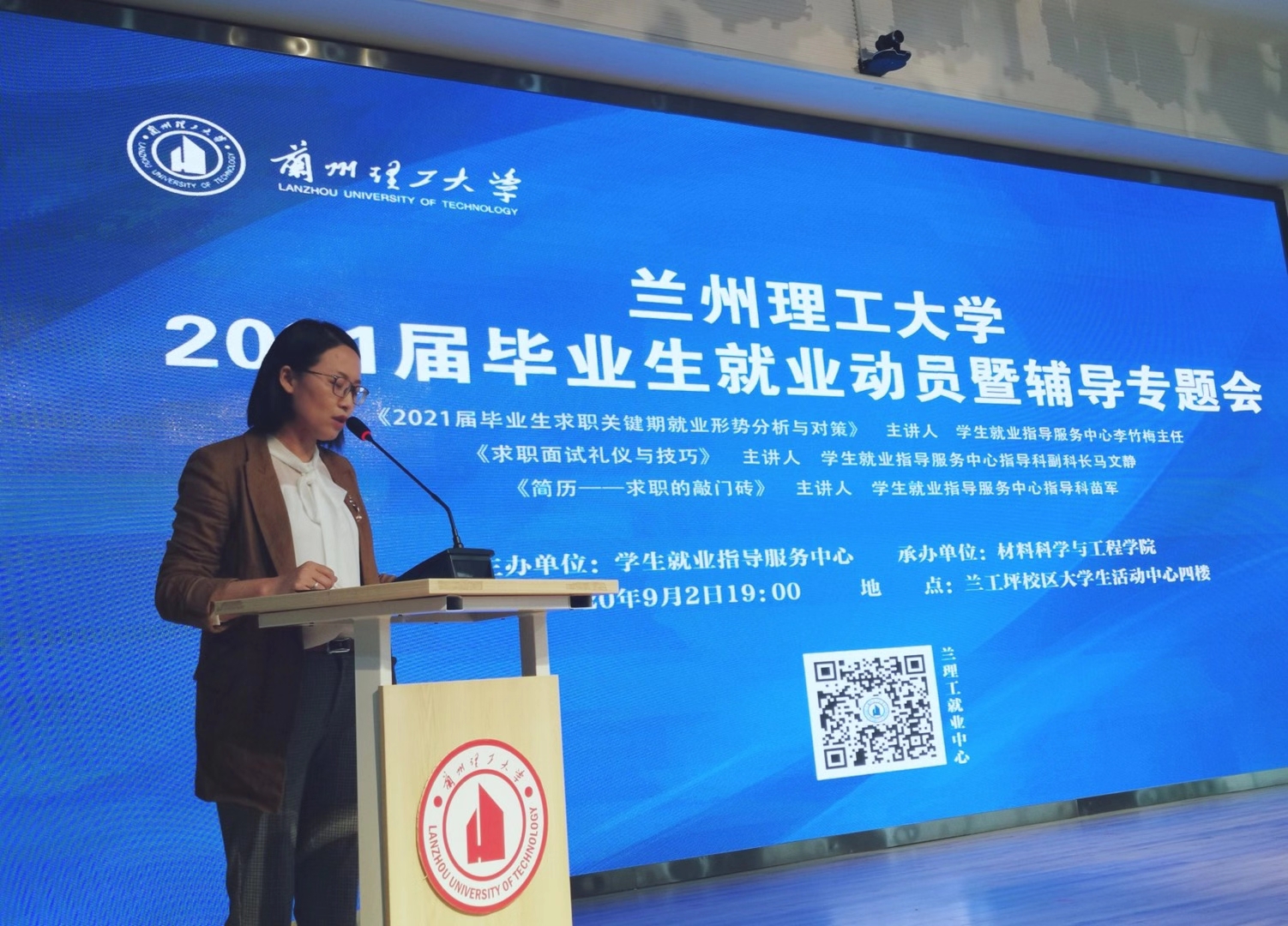 面对2021届毕业生在后疫情影响下的严峻就业形势,m88help center于9月3日下午19点整,为2017级所有毕业生在兰工坪校区大学生活动中心四楼召开了以“2021届毕业生年级大会暨就业指导”为主题的年级大会。学生就业指导服务中心主任李竹梅,学院副书记王祎敏,副院长李慧及辅导员老师杨文婷、李卫红一同出席此次会议,本次会议在学院副书记王祎敏老师的主持下正式召开。