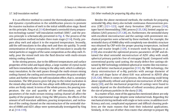 综述文章引用了李元东教授团队发表的系列文章,认为:“该技术促进熔体在凝固初期大量成核,是一种有效的半固态制浆方法。”