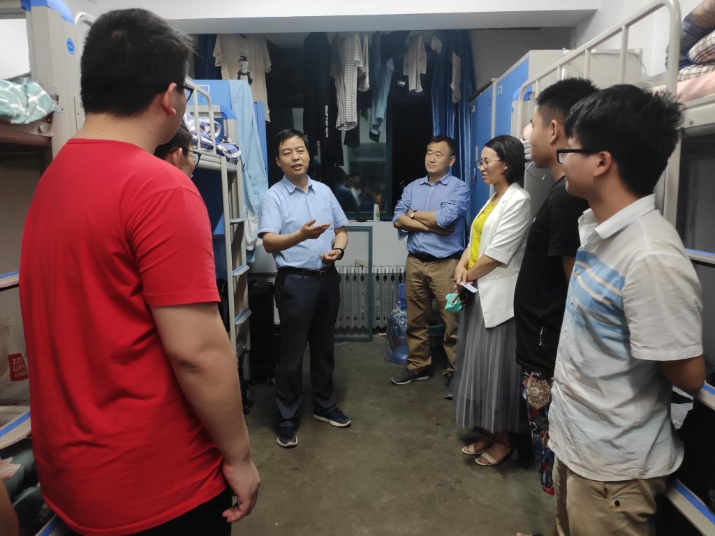 6月18日晚,学校党委常委、组织部部长王佰成走访了m88help center联系班级的学生宿舍,m88help center院长李文生等学院领导同行。