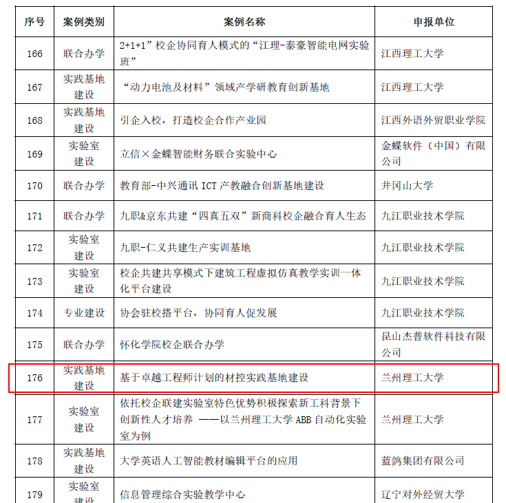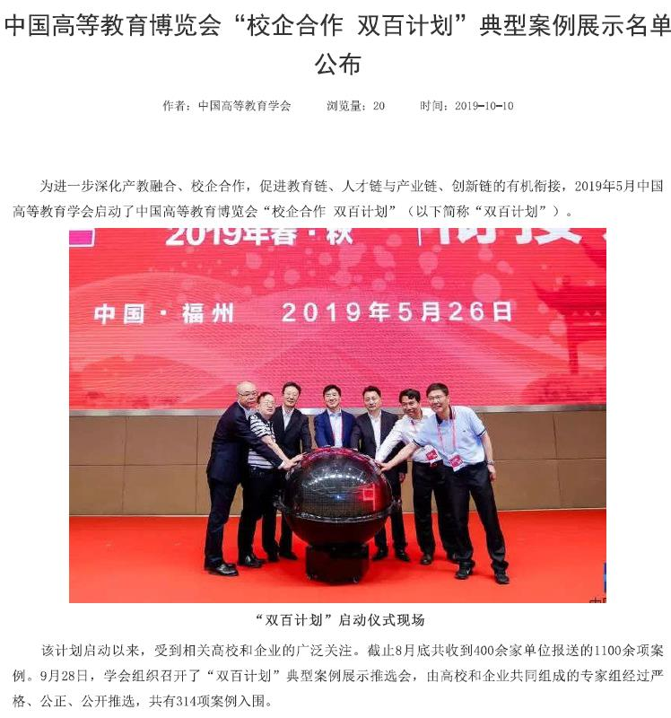 图3 中国高等教育博览会“校企合作,双百计划”典型案例发布名单