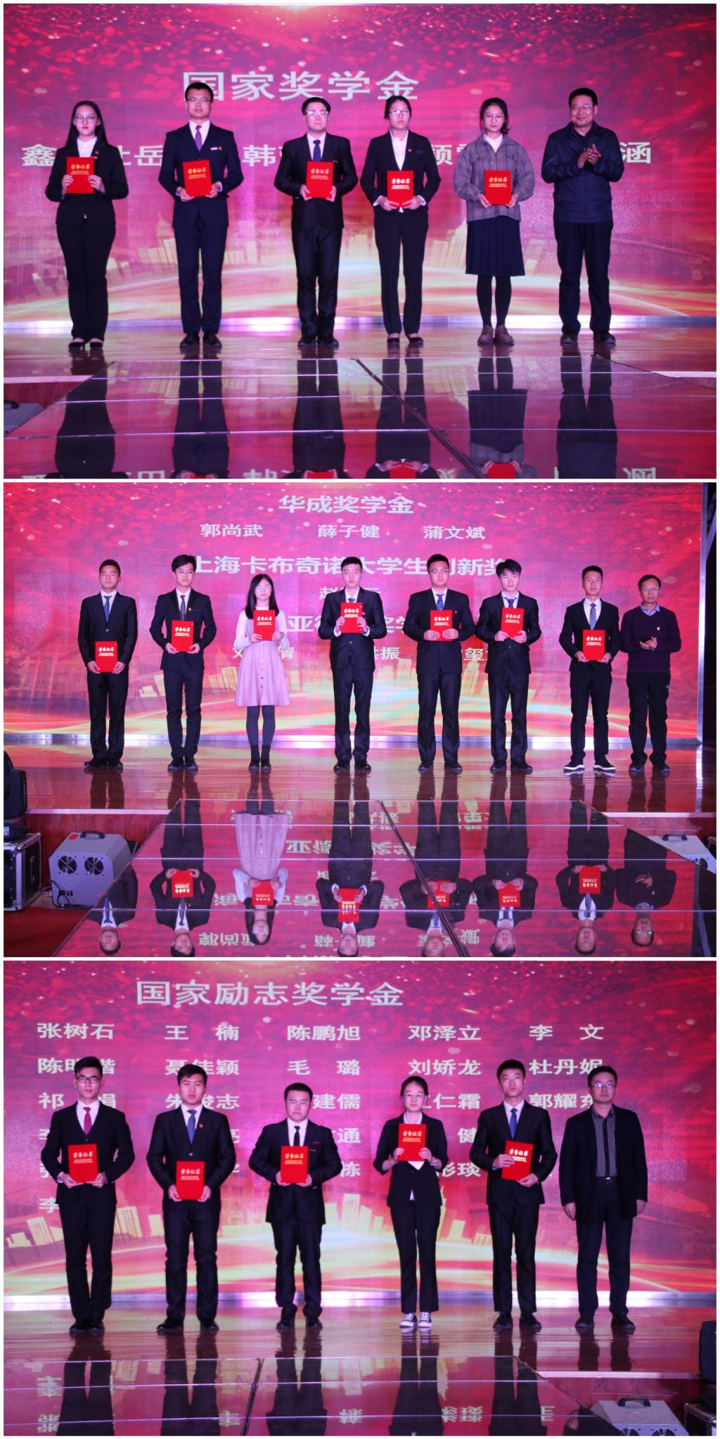 颁奖典礼环节同时对今年学院新设立的社会奖学金:“跃洲”材料创新人才奖学金、“天元智造”创新人才奖学金、“日丰”创新人才奖学金进行了现场颁奖。校友代表李世亮和企业代表张伟波都从学长和企业人士的角度对同学们提出期盼:希望同学们学习好基础理论课和专业课,珍惜在校期间的读书学习时间,多读书读好书,同时积极提升自己的综合素养,未来能够真正成为中国智造的中坚力量。
