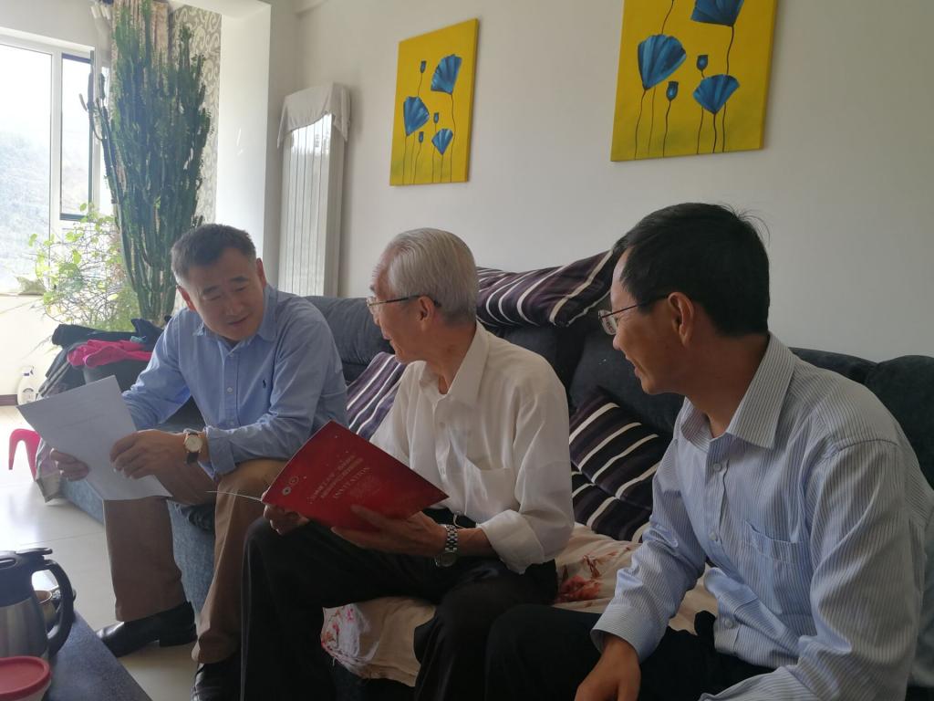 各位老先生均对学院领导的看望表示感谢,并回忆了老一辈材料人扎根西部地区,在六七十年代学校几乎一穷二白条件下,艰苦创业,为国家培养合格工科人才的故事。讲到动情之处有的老先生流下激动的泪水,更有老先生当场找出当年记录他们扎根西部,艰苦创业历程的照片和讲稿、编著的教材。许广济教授即兴赋诗一首:“百年校庆百年路,数辈自生创业成。何当呈现振兴事,期待创新后来人。”表达了老教师对当代材料教师的心愿,使现场人员深受教育。对于身在外地的一些老教师,学院主要领导也一一通过电话送去问候,盛情邀请能够返回他们曾经工作奋斗的校园,为学院下一步发展提出宝贵的意见建议,由于一些老先生身体等各方面原因,不能到来,但也以各种方式表达了对学院发展的期许,其中远在辽宁的李鹤岐教授发来信息:“励经滄桑百年,造就无数辉煌;至此金秋九月,迎百年校庆之际:祝福学校,积历厚蕴,再展宏图;期盼兰理工材料人:不忘初心,砥励前行,为创建“双一流”大学,再谱写绚丽的新华章!”。