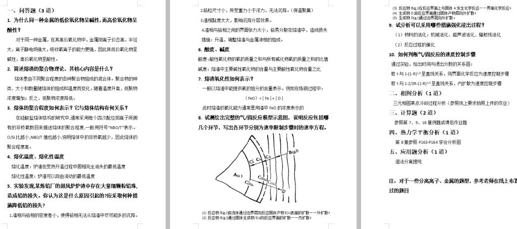 《冶金物理化学》、《冶金原理》、《冶金传输原理》考前复习由郭颖雪和杨文通讨论详细的冶金物理化学知识框架,依据知识框架,通过查阅相关资料等途径进行完善,做成了考前复习文档,发给同学们进行复习。不仅帮助同学们建立了一个冶金物理化学的完整的知识体系,而且节约时间提高学习效率。