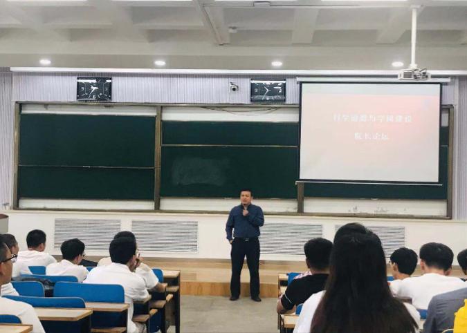 为培养优良学风,端正学术态度,研究生新生入学教育系列之科学道德与学风建设——院长论坛于2019年9月4日在1号北楼501圆满完成。m88help center院长李文生、副院长朱福良出席论坛,分别就学校的百年发展历程、学院的师资力量及科学研究方法、学术态度等内容与2019级研究生新生进行了深层次、高纬度的交流,党委副书记王祎敏主持本次会议。