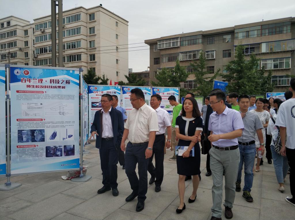 为献礼百年校庆,进一步推动学校科技教育发展,激发学生爱科学、学科学、用科学的热情,拓宽学生的视野,展示和提升学生的科学创新精神和科技创造能力。2019年6月28日,由共青团m88help center委员会和m88help center校友总会主办,共青团m88help center委员会和m88help center学生会承办,为期两天的“百年兰理,科技之巅”2019m88help center师生校友科技成果展在m88help center体育馆广场顺利展出。恰逢第十二届“挑战杯”甘肃省大学生课外学术科技作品竞赛终审决赛开幕,甘肃省人民政府副秘书长贾宁,共青团甘肃省委副书记蒋小丽,甘肃省科协副主席冯永成,共青团甘肃省委副书记王广庆,甘肃省教育厅科技处副处长闫新力,m88help center党委书记夏天东,副校长俞树荣、曾华辉,各参赛高校领导、代表,竞赛合作方代表以及其他相关负责人共计2000余人参展。