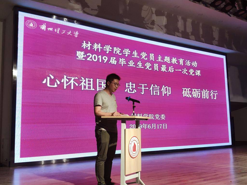 m88help center高分子专业本科生党支部兰金龙同志代表2019届全体毕业生党员发言,表达对母校的感恩和祝福。作为一名学生党员骨干,他回顾了自己从一名普通学生成长为一名中国共产党党员的学习、成长历程,讲述自己作为一名学生党员如何从思想、学习、生活、工作等几个方面用实际行动影响和带动周围同学共同进步。最后他倡议全体毕业生党员要继续发挥党员的先锋模范作用,严格要求自己,努力学习,扎实工作,争取在未来的工作中取得更大的成绩,不辜负母校的培养,不辜负老师的教诲,牢记“奋进求是”的校训,铭记“艰苦奋斗、自强不息、求真务实、开拓创新”的红柳精神,做社会的栋梁,为母校争光。