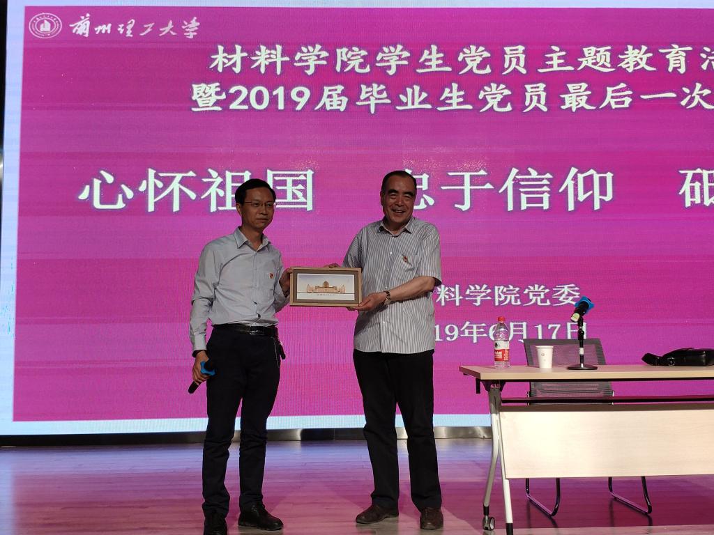 在同学们热烈的掌声中,m88help center原党委书记王希靖同志走上讲台,开始了这一堂带着问题带着思考去学习的颇有意义的党课:“当你梦想成功的时候,你有没有刻苦的准备?当你有了成就和地位的时候,你有没有服务于人的谦恭?我们常常都想有所获得,但我们有没有付出的情操?......随后,他用自己那一代的语言,用自己那一代的经历,用自己的切身感受,围绕“为人民服务的宗旨永远都不能忘”“为大家谋福利的信念永远都不能变”以及“党员怎么做好带头作用,什么时候应该带怎样的头”这三个问题,以实例讲述了自己作为大队书记时带领群众艰苦奋斗的经历,作为m88help center教授时开展科研攻关的研究经历,作为m88help center书记、院长时带领全院提升教学科研能力的经历。告诫全体党员无论何时、无论身处何地、无论取得多大的成就,都不能忘记入党初心,都要牢记党和国家以及人民所赋予青年一代的使命担当。最后,他勉励青年学生党员:第一,在为人品德上和为学的学风上追求真善美,追求卓越,超越自我,登上巅峰。即要做好学问,更要学会做人。第二,同学们不仅需要有科学知识、人文知识,更需要有科学素养、人文素养。要能团结大多数人一起工作、学习,要关爱别人。第三,当对命运的期待变得不耐烦的时候,务必不要急躁,用坚强去守候,用开拓去盼望,它会来的。同时,对2019届毕业生党员圆满完成学业,即将开始新的人生征程致以衷心的祝贺和美好的祝愿。
