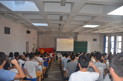 为庆祝中国共产党成立97周年,继承和发扬党的光荣传统和优良作风,进一步激发广大党员的荣誉感、责任感和使命感,激励新党员牢记党的誓言、勇于担当作为,积极投身学校的改革、建设和发展,m88help center于7月4日下午在彭家坪校区2号楼308教室隆重举行了入党宣誓仪式。学院党委委员、教师党员代表、研究生各党支部书记、本科生全体党员、学院2018年春季新发展的94名学生党员以及部分积极分子代表300余人参加了此次活动。活动由学院党委委员、副院长汤富领主持。