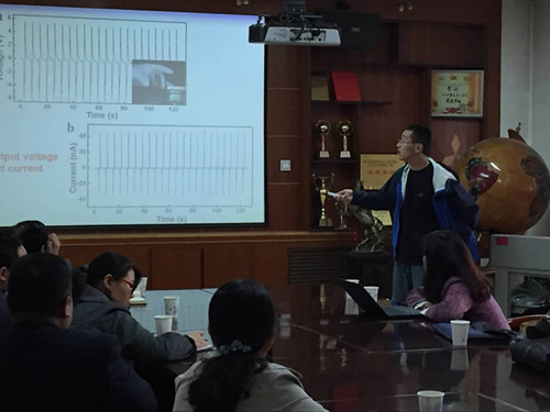 秦勇教授做了题为《弹性纳米发电机》的学术报告。报告中首先对纳米发电机的发展进程进行了概述,接着讲述了秦勇教授课题组在这一领域所做出的纤维基纳米发电机、交流纳米发电机、集成化纳米发电机、非接触纳米发电机以及生物相容纳米发电机等研究工作。
