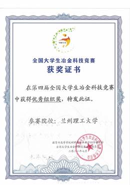 2021年7月30日,由教育部高等学校材料类专业教学指导委员会主办、华北理工大学承办的第四届全国大学生冶金科技竞赛圆满结束。我校广大师生积极参与,在本届冶金科技竞赛中取得了良好的成绩,共获得一等奖1项,二等奖3项,三等奖20项;与此同时,我校也荣获第四届全国大学生冶金科技竞赛优秀组织奖。