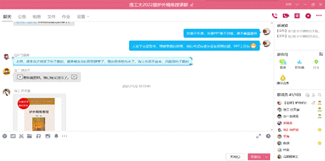 线上上课期间倪老师丝毫没有受到隔离环境的干扰,坚持高标准、严要求,通过对话、连麦、发送QQ消息等与同学们积极互动、认真授课,同学们也能认真听讲,积极回答问题。同时,在课件中编入选择练习题,使用腾讯课堂中的“答题卡”功能,在授课时让学生进行选择,通过学生实时的选择结果,方便教师了解学生对知识点的掌握情况,并通过讨论区与“举手”功能进一步增强师生互动,提高学生的学习效果。