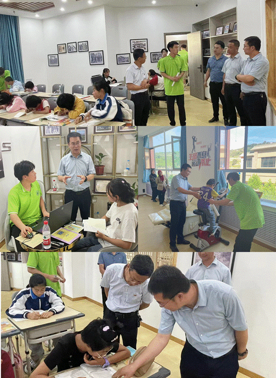 仪式结束后,李院长一行来到了社区活动中心,认真听取实践队员每日的工作内容和实践成效,与当地留守儿童亲切交流,询问他们的学业情况、生活情况,为以后实践基地实现长效合作提出了宝贵的意见和建议。