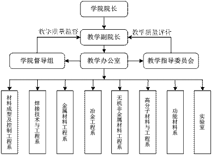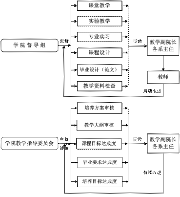 学院院长是学院本科教学第一责任人,学院教学质量监控负责人为主管教学副院长,包括学院教学指导委员会、学院教学督导组、学院教学办公室。