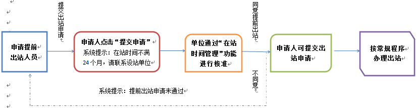 在站已满21个月,但未满24个月已通过设站单位出站考核的博士后人员,由设站单位核准提前出站。