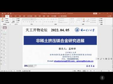 2022年04月05日下午14:30,m88help center通过腾讯会议APP线上举办了2022年春季学期第六期“天工开物”学术讲座,邀请孟帅举博士和张学拯博士为2021级全体硕士研究生做学术报告。m88help center全体2021级硕士研究生参加。