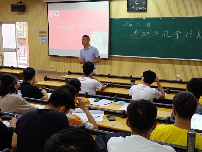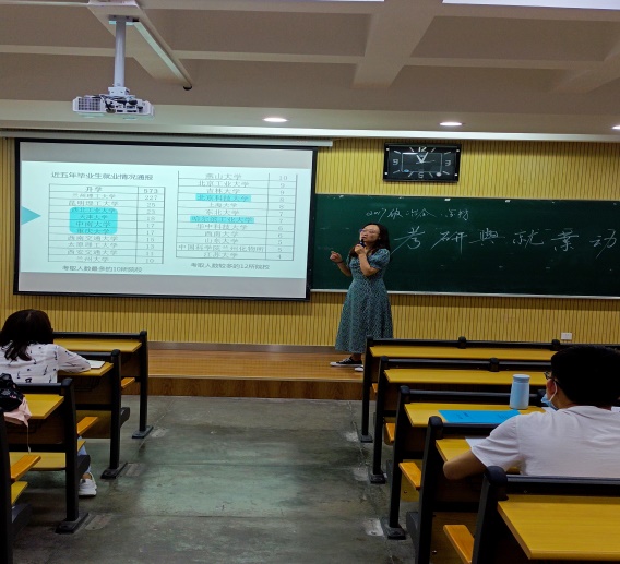 首先,毕老师从近几年考研推免生比例增大、国家线参考等方面进行了全面分析,表示目前的就业形势下研究生拥有更强的竞争力,鼓励大家积极考研。同时希望同学们对自已准确定位,正确选择报考院校和专业,既不好高骛远,也不妄自菲薄,争取在2021年研究生考试中捷报频传,为个人争荣誉,为学院添光彩。接着他从金属材料和冶金工程专业最近几年的就业形式和方向出发、学生签约的公司等来分析两个专业学生就业的情况,并鼓励就业学生积极参加就业,为自己选择出更好的就业出路。
