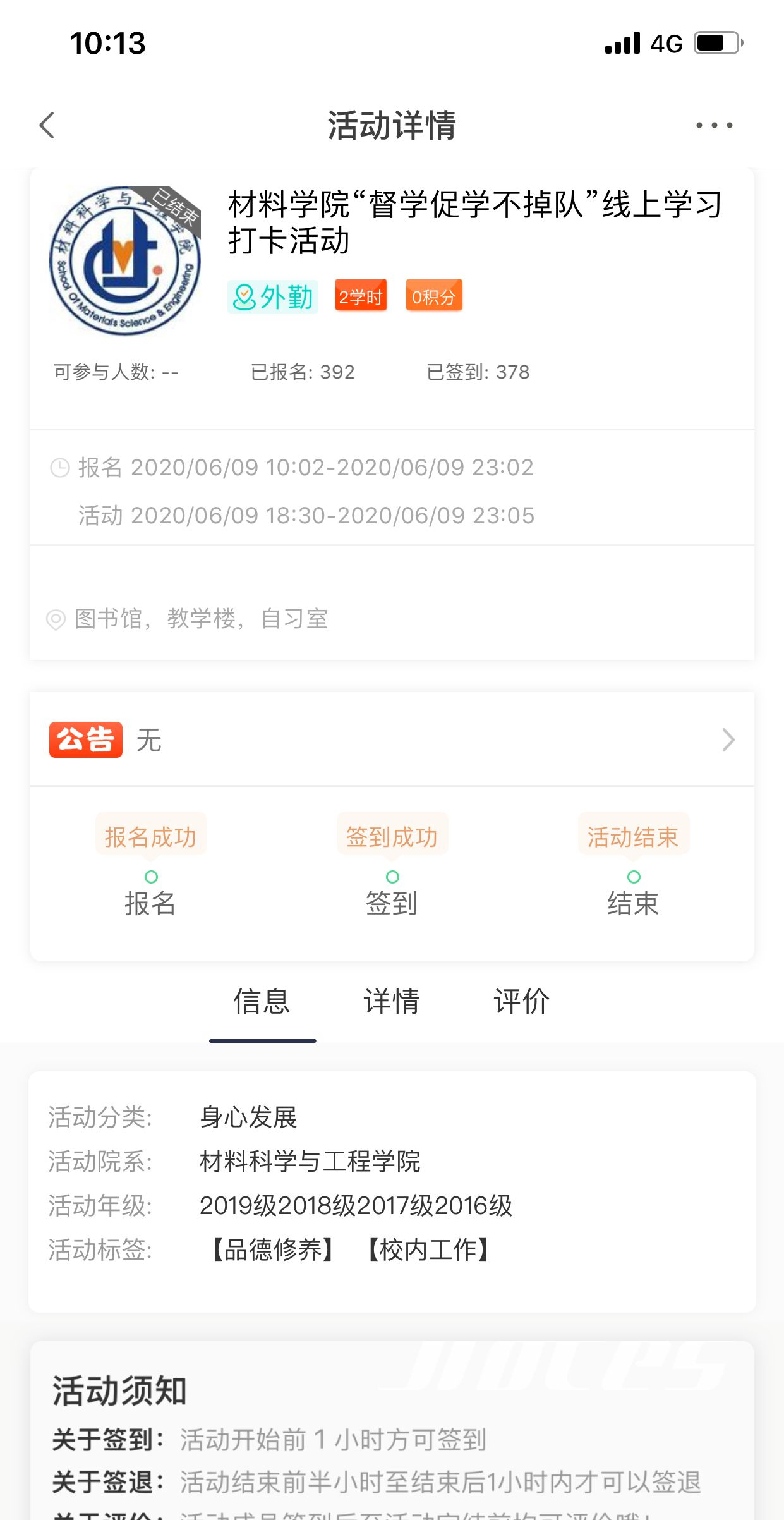 为认真贯彻落实习近平总书记关于坚决打赢疫情防控阻击战的重要指示精神,线下自习活动疫情期间全部取消,为确保学生能尽快适应特殊时期的教学模式,平稳顺利完成春季学期学习任务,备战春季学期期末考试,提高基础课程学习质量,加强各年级学生学风建设,m88help center组织开展“督学促学不掉队”线上学习打卡活动,为学院2020年春季学期线上线下相结合的教学有序开展保驾护航。2020年6月9日开始,持续一月的“督学促学不掉队”线上学习打卡活动正式开始。