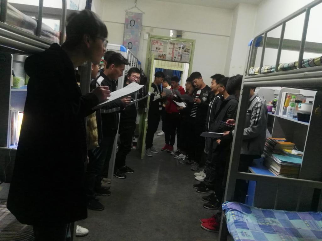 为进一步发挥宿舍文化育人功能,构建安全、和谐的宿舍生活环境,培养学生良好的学习生活习惯,促进学生宿舍卫生、文明建设,学院分别于8月29日、9月16日、10月24日、11月15、24日组织五次卫生安全检查评比。每次由辅导员老师带队,设有十位评委打分,评委班子由各班班长、生活委员组成,围绕地面卫生、物品摆放、床铺整理、宿舍通风以及用电安全等五个方面重点检查,同时也不放过对阳台拐角、衣柜上层等卫生死角的检查,力求做到全方位、无死角安全卫生检查。辅导员老师指出,在当下学生功课、实验繁忙,考研同学披星戴月积极备考之时,整洁舒适干净和谐的的宿舍卫生环境对学生的身心健康其尤重要,努力把宿舍建设成清洁、文明、安全、和谐的生活环境,建设成为同学们温馨的心灵港湾。同时,在检查过程中老师和同学们会随时交谈学习和生活方面的话题,老师总会耐心地解答同学们的困难疑惑,同学们在学校感受到“家”一般的温馨。通过五次检查打分汇总评比,评选出了17#-121、17#-120等22间安全卫生先进宿舍。
