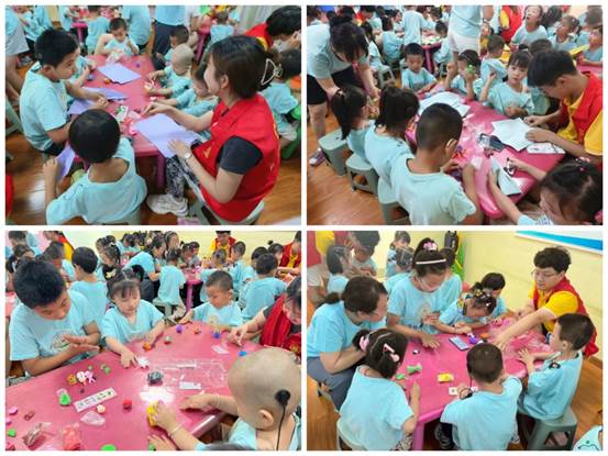 践行青春“普”写乡创暑期社会实践队在五家乡马场村马场小学开展“普通话趣味推广”小课堂,志愿者们从普通话发音与表达应用等方面入手,提升当地孩子们对普通话的应用能力。在推普小课堂上,志愿者们通过捏彩泥、讲故事、唱歌、绕口令等趣味活动,在游戏中学习普通话的表达与应用,进一步感受中华汉字的魅力。“书同文,语同音,才能心相通,情相融”,实践队将推普工作内化于心、外化于行,用实际行动助力乡村振兴。