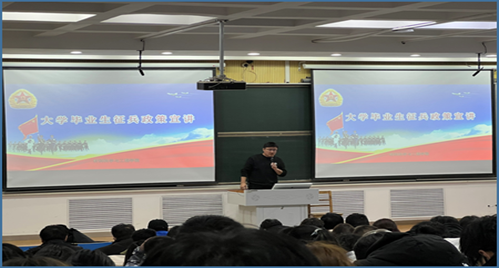 学院组织退伍复学军人组成的征兵宣讲团深入宿舍进行征兵宣讲。他们以 “过来人” 身份,以朋辈视角传递军营魅力,用生动语言讲述军营生活的酸甜苦辣,分享了摸爬滚打的训练艰辛,分享了战友同甘共苦的深厚情谊,分享了自身从青涩走向坚毅的蜕变成长。退伍复学同学分享的军队生活,激发了同学们对投身军营的向往。