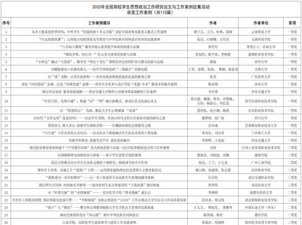 近日,教育部高校思想政治工作队伍培训研修中心(西安交通大学)公布了2025年度高校思想政治工作优秀论文和优秀案例征集活动获奖名单。学院辅导员李双辰、刘汉青申报的工作案例荣获优秀案例一等奖。