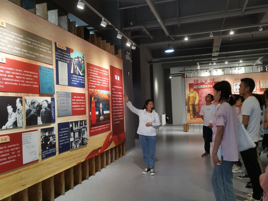 通过现场聆听讲解员讲解玉门油田的开发历程和铁人王进喜的事迹,亲身感受“铁人”王进喜艰苦朴素的工作作风和不怕牺牲、无私无畏的革命精神,使师生得到了一次精神和心灵的洗礼,也提升了对党性更加深刻的认识,同时点燃了新时代青年的奋斗激情。著名诗人李季曾赋诗“苏联有巴库,中国有玉门,凡有石油处,就有玉门人。”铁人王进喜充分地诠释了这一句话,他干工作爱钻研、爱琢磨、有创新精神,身上有一股不服输的劲头,铁人精神值得当代每一位大学生学习并以之为榜样。发生井喷时他身拉肩抗,第一个跳进水泥浆里充当“人肉搅拌机”,他的忘我拼搏、无私奉献、不顾个人生命安全的精神深深震撼着观展的师生。