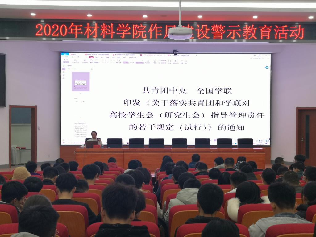 为贯彻落实习近平总书记致全国青联十三届全委会和全国学联二十七大的贺信精神,持续深化学联学生会组织改革创新,按照全国学联二十七大工作部署和《关于推动高校学生会(研究生会)深化改革的若干意见》、《关于落实共青团和学联对高校学生会(研究生会)指导管理责任的若干规定(试行)》、《关于学联学生会工作人员改进作风服务同学的若干规定》等相关文件要求,进一步深化学院学生会(研究生会)改革,落实好共青团和学联组织指导管理责任,坚持从严治会,加强我院学生组织学生干部队伍建设,构建一支胸怀理想、心系同学、品学兼优、作风扎实的学生干部队伍,共同维护组织形象,更好履行工作职责,展现清新阳光的组织形象,11月27日晚,m88help center团委于兰工坪校区图书馆二楼报告厅召开学生组织作风建设警示教育会,m88help center团委书记刘舒婕主持会议。