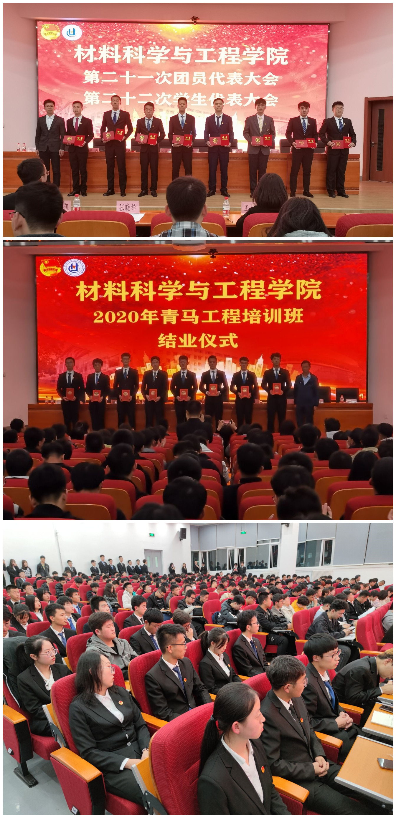 校团委张晓锋副书记为大会致辞,对我院上届团学工作给予了充分肯定和高度认可,并对今后学院团学组织提出三点要求:深化思想引领,提高青年学生的自信心和使命感,保持和增强共青团组织的政治性、先进性、群众性;把握改革关键,增强团组织的凝聚力和吸引力,深化团学组织改革,将改革向纵深不断推进,要明白“为什么改”、“怎么改”,要树立“改到哪”的目标要求;全面落实从严治党的要求,坚持从严治团,把新时代党的建设的新要求贯彻落实到团的建设中,着力提升团学组织力和战斗力。张晓锋为上届团委、学生会委员颁发纪念品,李元东为2020年度学院青马工程培训班优秀学院代表颁发结业证书。