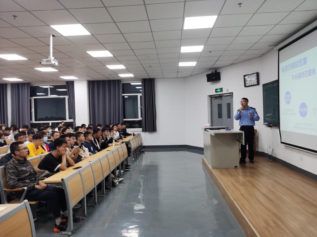 马警官从什么是电信网络诈骗、高校学生常见的诈骗方式及应对之法、如何让诈骗远离我们等方面为同学们讲解,用一个个发生在同学们身边血淋淋的经典案例为大家分析,突出电信诈骗危害之大。大多数骗子利用同学们贪便宜、单纯等心理特点实施各种诈骗伎俩,使部分学生蒙受巨大的财产损失和精神压力。近期网络电信诈骗案件(包括电话、电信、网络、淘宝网刷信誉等17种类型)多发,其中还有被骗的老师。而诈骗分子更是无孔不入,利用多种途径进行诈骗,学生更是诈骗分子行骗的主要对象之一,部分学生的安全防范意识过分薄弱,身陷骗局之中无法自拔。最后马警官强调,天下没有免费的午餐,大家必须提高网络安全意识,文明绿色上网,谨防电信网络诈骗,凡是网上涉及到个人财产的情况必须提高警惕,不能沾手网络贷款、网络赌博、网上交友等网站,更不能从事网络诈骗活动。这一次网络安全教育给同学们敲响了警钟。