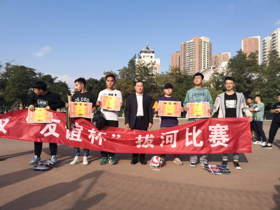 比赛共有12个班级参赛,每个班级一队,每队16人,14个男生2个女生。比赛实行一轮淘汰制,抽签分组决定比赛顺序。当比赛的哨声一响,队员们口中一起高呼“一二加油,一二加油!”,双手紧握长绳,憋足了劲,拼命往后拉,班主任也在队伍旁边助阵加油!班级内剩余的同学们自发的组成了拉拉队,为本班人员加油。呐喊声此起彼伏,飘荡在整个操场上空。最终,焊接一班以第一名的成绩夺冠,冶金二班与高分子一班分别获得第二、第三名的好成绩,值得我们学习的是获得优秀组织奖的材控卓越班和获得文明拉拉队奖的冶金一班。没有获奖的班级也无需气馁,在这项集体竞赛活动中最重要的是我们收获了团结精神。