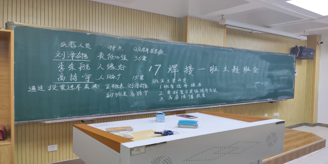 m88help center17级焊接技术与工程专业焊接一班56名本科生于 2020年6月30日在兰工坪校区一号南楼101教室召开了以“班委换届及考研复习方法、诚信高考”的主题班会,此次会议由焊接一班班主任周玉兰老师主持召开。