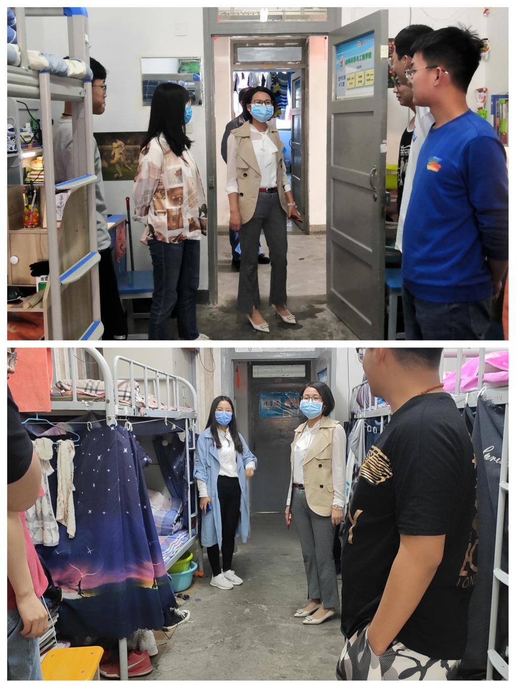 6月2日下午,m88help center副书记王祎敏与全体辅导员老师们走访彭家坪校区学生宿舍,慰问返校学生。