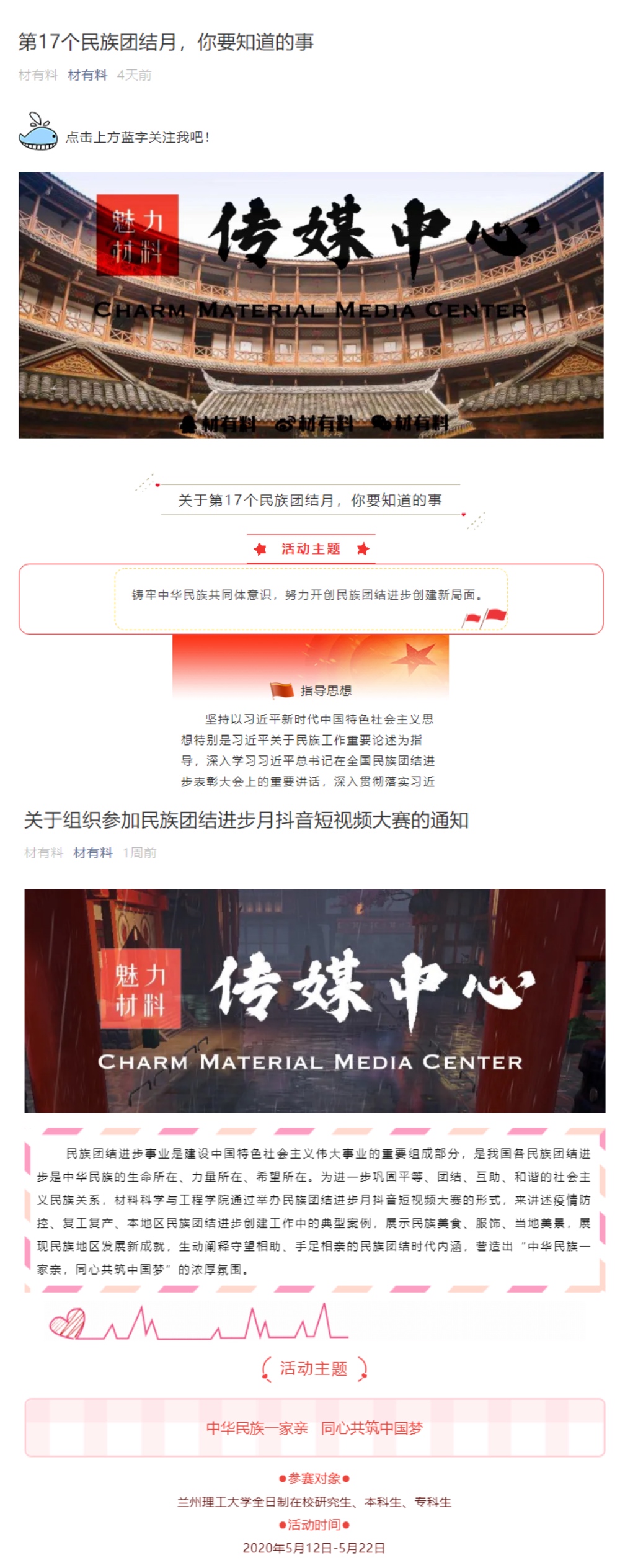 “共同团结奋斗、共同繁荣发展”是新时代民族工作主题,为讲好民族团结好故事、唱响民族团结好声音、弘扬民族团结主旋律、传播民族团结正能量,m88help center组织召开民族团结进步宣传月主题系列活动,以主题党日活动、线上宣传引导、民族团结抖音短视频大赛等形式,多层次开展民族团结进步宣传活动,引导各族师生牢固树立“三个离不开”思想,增强“五个认同”意识。