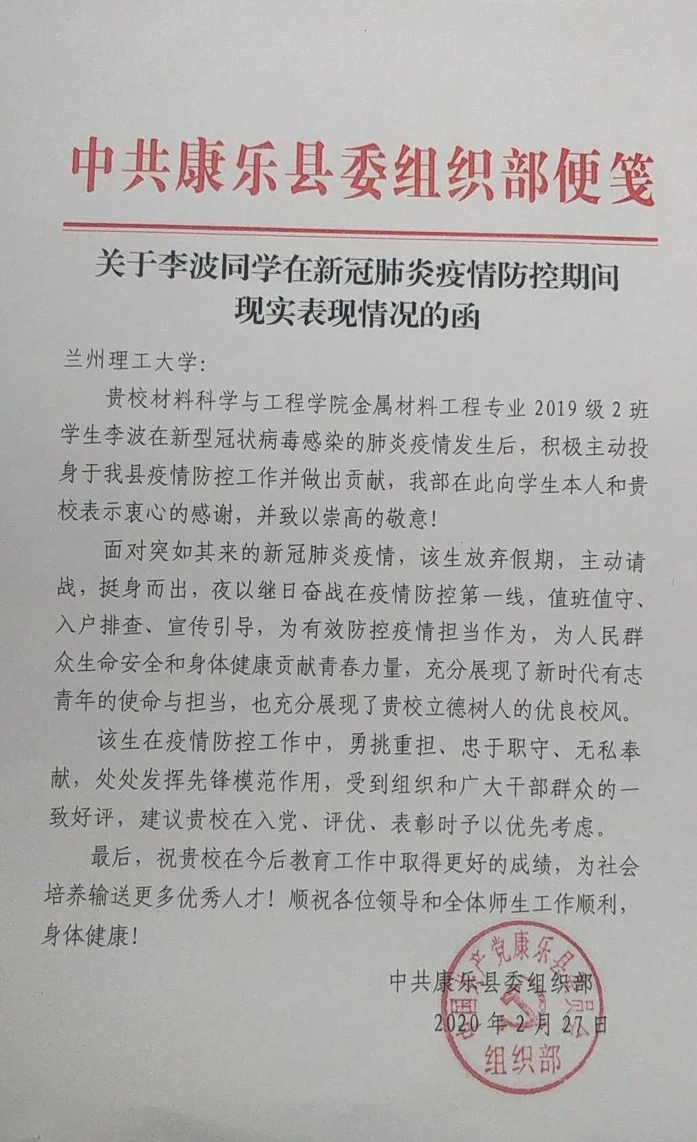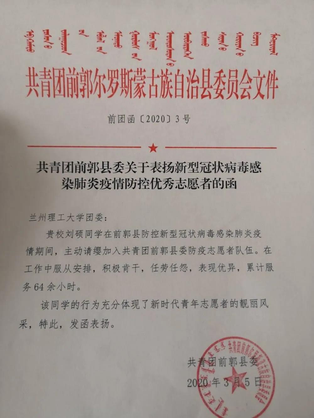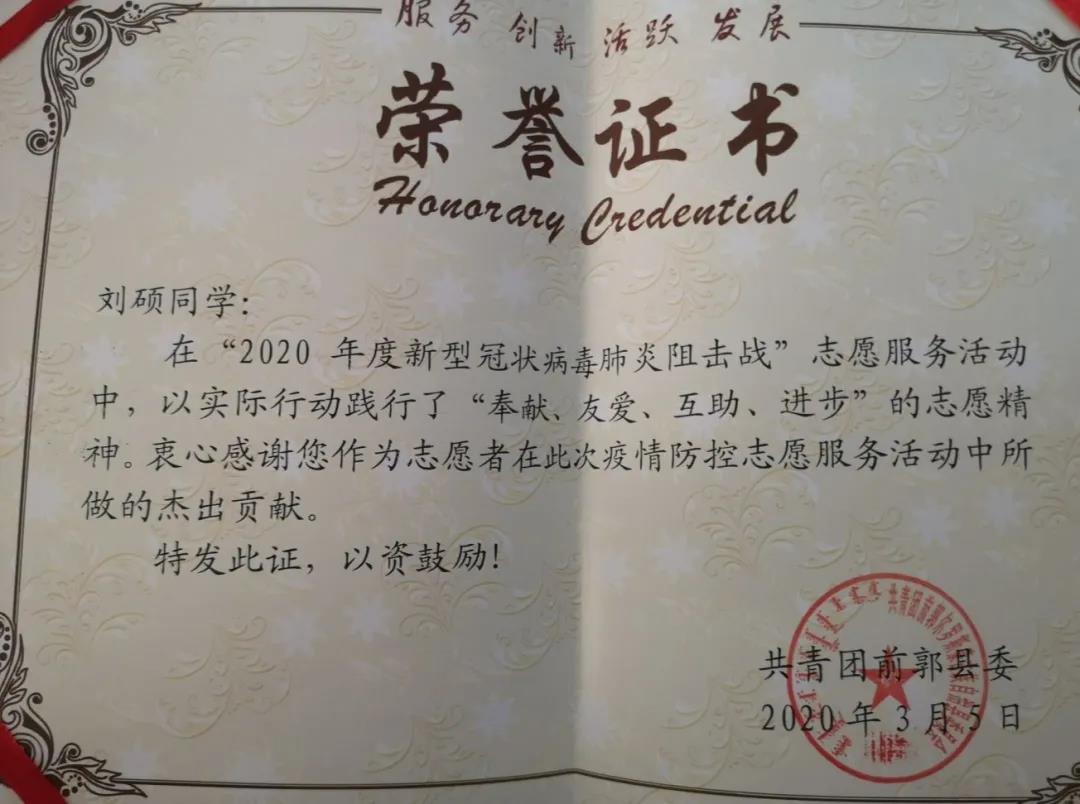 刘硕同学最终出色完成了社区防疫任务,为家乡疫情防控工作贡献了自己的力量!