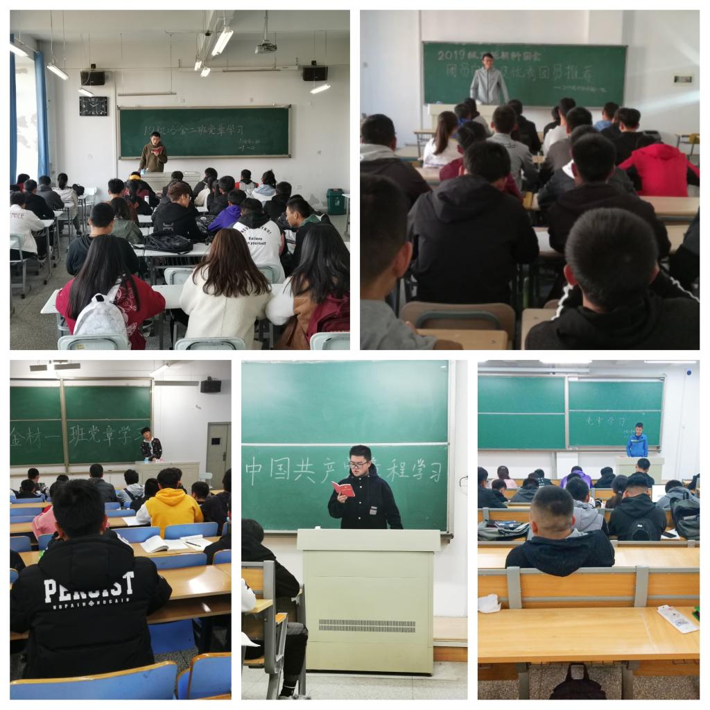 通过党章学习小组活动,19级的新生班级深入学习了《中国共产党章程》、十九大报告和习近平新时代中国特色社会主义思想等内容,提高了同学们向党组织靠拢的积极性,让爱国爱党的精神在同学们心中扎根。同学们纷纷表示会自觉把学习党的精神与大学的生活学习有机结合,用思想指引行动,奋发有为,努力做一名优秀的大学生。