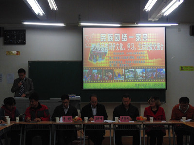 在活动开始时,李卫红老师介绍了我院少数民族同学的基本情况,通过56个少数民族服饰图片介绍了各民族的历史和重要节日。卢学峰副教授从个人的学习、生活、工作经历总结经验和心得,向同学们做了精彩的论述,强调人与人之间和谐相处的重要性。少数民族研究生代表毕胜、关畅和2013级优秀维吾尔族学生代表米婷相继发言,就日常学习,生活分享经验,并针对同学们提出的问题给出了自己的看法和建议。紧接着,各个少数民族学生踊跃发言,分享和交流自己民族的特色和两年多的大学生活。活动尾声,兰晔峰书记与同学们分享了他丰富的人生阅历,他强调,少数民族同学要克服语言障碍,在大学里不仅要学会学习,还要学会为人处世,提高社会交际能力,这样才能为以后步入社会打下坚实的基础。