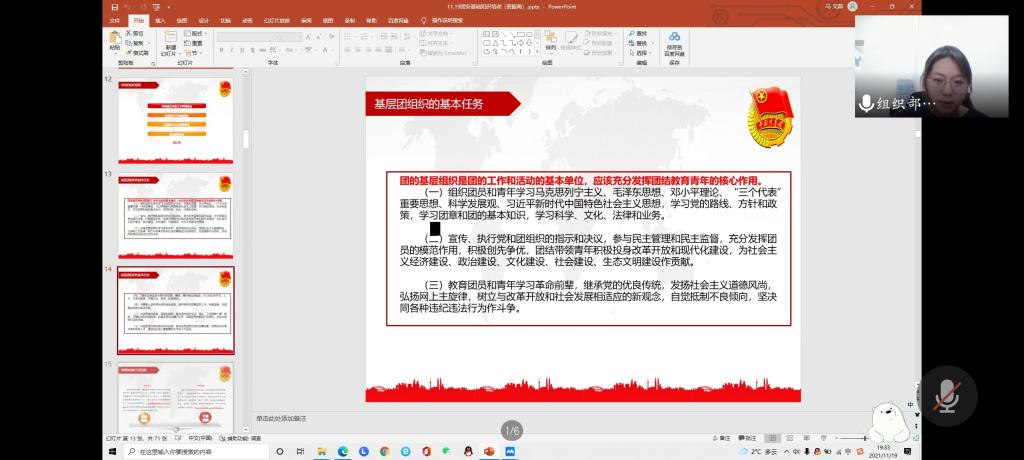 为进一步加强和改进新时代团员教育管理工作,保持和增强团员先进性和光荣感,根据习近平总书记在党的十九届六中全会上的重要讲话和会议精神,学习党的十九届六中全会公报和《中共中央关于党的百年奋斗重大成就和历史经验的决议》,全面推进“学党史、强信念、跟党走”学习教育,培养有理想信念、政治觉悟、责任担当的团干部,打造一支政治强、团务精、作风好的团支书队伍,全面提升学生干部综合素质能力,充分发挥共青团作为党的助手和后备军的作用,坚定团员青年跟党走的决心,m88help center团委组织部于近日开展新生团支书基础团务专题培训会,以“加强思想建设,夯实团务基础”为主题,开展学生干部综合素质能力提升专题培训第三讲。会议由m88help center团委组织部马文蕊和2020级功能材料团支书王煜同学主讲,m88help center团委21级团支部书记、团委组织部全体同学参加。