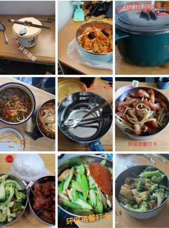 一日之计在于晨,每天的打卡从早起学习打卡开始,青马学员们身居“一线”,坚持早起督促同学参与网课学习。学习之外的活动也延伸至日常生活,干净整洁的宿舍环境营造出良好的舍风,青马学子带头组织广大同学打扫好宿舍卫生,虽疫情封校,但是要有热爱生活的信念信心!为响应学校不得食堂堂食的防控要求,青马学子带头使用自己的饭盒,环保用餐,并积极组织全体同学参与并完成“光盘行动”,用自身的行动给同学们带来了积极向上的一面!