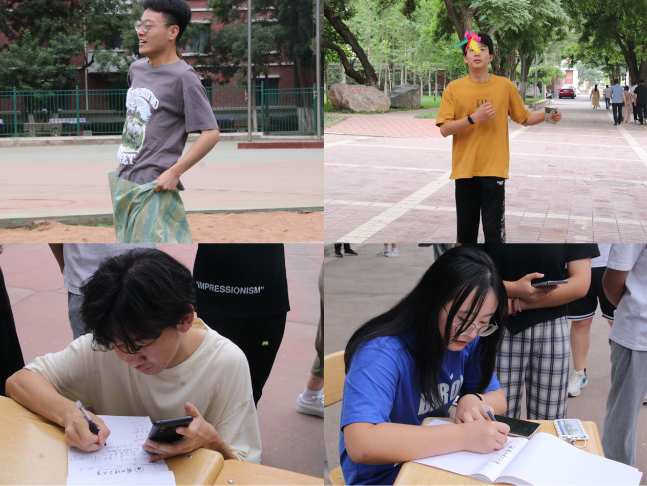 本次趣味活动共设置你画我猜、踢毽子、跳绳、跳袋子、祝语祖国五个项目。在各个活动中,同学们全身心投入、通力合作、努力争先,现场热火朝天,从操场到鱼沼、从篮球场到中试楼,兰理校园里处处洋溢着材料学子的朝气与活力。在祝语祖国活动中,同学们将自己对党和国家的美好祝福与个人理想写在便签上,增强同学们的家国情怀,激发同学们不懈奋斗为国家发展做贡献的动力。