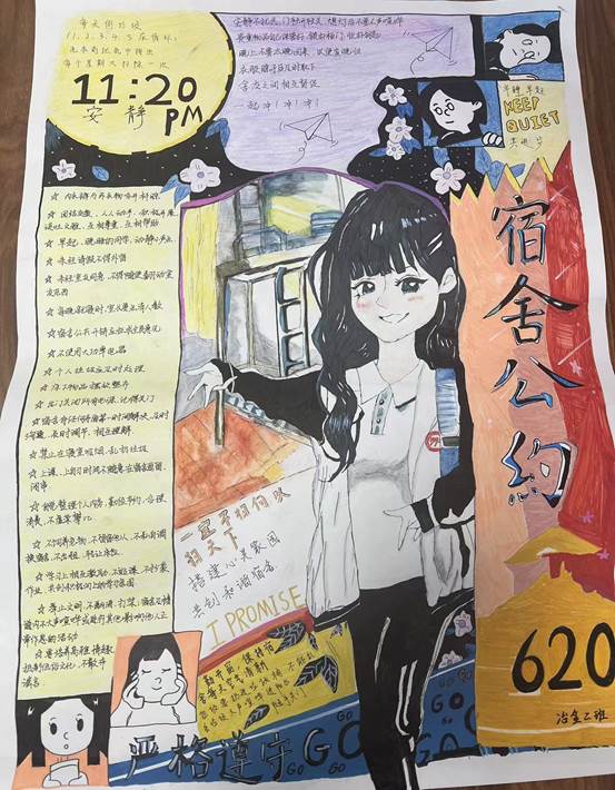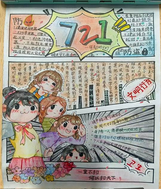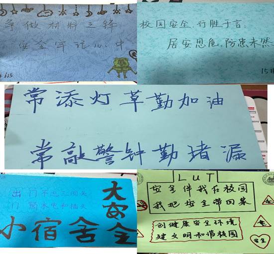 安全是人生命之外的最大需求,大学校园安全关乎每个同学的切身利益,也需要每个同学自觉遵守制度,用实际行动来维护校园这一片安全净土。“守文明 护安全”宿舍文明公约海报设计活动中,每个宿舍都自觉约定宿舍文明行为,明确个人职责,守护宿舍人身和财产安全,制定一份专属的“宿舍文明公约”;在 “口号要响亮 安全放心上”校园安全宣传标语征集活动中,同学们集思广益,写出一条条诙谐又朗朗上口的安全口号,并实践于行,用行动努力营造良好的校园安全文明氛围。