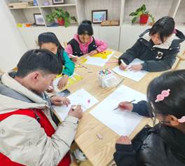 志愿者们带领孩子们观看爱国红色影片《建军大业》,激发孩子们的爱国情怀和民族自豪感,帮助他们树立正确的价值观、增强历史意识、培养社会责任感和提高道德素养。同时利用课余时间,志愿者们带领孩子们加强体育锻炼,在公园扔沙包做游戏,在娱乐设施上共同玩耍;专注孩子们艺术培养,提高审美水平和艺术修养,共同完成了手工画、剪纸等手工艺品。