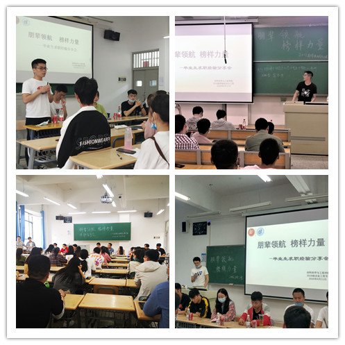 6月11-19日,m88help center2018级分专业、分时段在彭家坪校区举办了以“朋辈领航 榜样力量”为主题的毕业生求职经验分享会。李少洋等24位毕业生及2018级约350名学生参加分享会,会议由辅导员陈亚红主持。