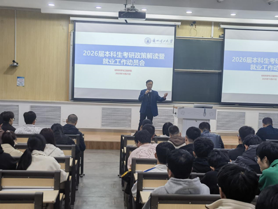 会议不仅为同学们指明了方向,凝聚了共识,也充分体现了学院坚持以学生为中心,全力助推学子成长成才的务实举措与坚定决心。下一步,学院将以此为契机,持续优化指导与服务,通过开展个性化咨询、强化复试辅导等系列举措,为全体毕业生的未来发展保驾护航,为实现毕业生高质量充分就业和深造目标奠定坚实基础。