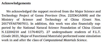 本科生不仅熟练使用相关软件和完成学习任务,更重要的是通过软件学习与科研实践,能够在材料研发前沿发现问题,提出解决方案,为未来的科研或工程工作积累经验。新的教学理念服务于材料科学与工程学科的新工科建设,新的授课方式为培养本科生的科研能力提供了成功案例,新的教学内容展示了理论计算在材料研发中的重要性。《计算材料学》是汤富领教授主讲的一门省级一流本科课程,在专业课程教学中融入科学研究,并强化训练本科生的辩证思维能力。具有科研内容的项目式教学提升课程的实践性和趣味性,增强同学们的实际操作能力、创新能力、自我组织和协调能力,增加了同学们的课程获得感。