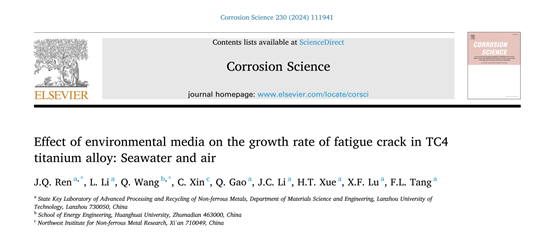 省部共建国家重点实验室和m88help center甘肃省材料基因与结构基础学科研究中心钛合金疲劳裂纹扩展研究在TOP期刊《Corrosion Science》发表