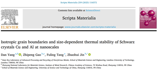 省部共建国家重点实验室和m88help center甘肃省材料基因与结构基础学科研究中心铜、铝Schwarz受限晶体结构研究在TOP期刊《Scripta Materialia》发表
